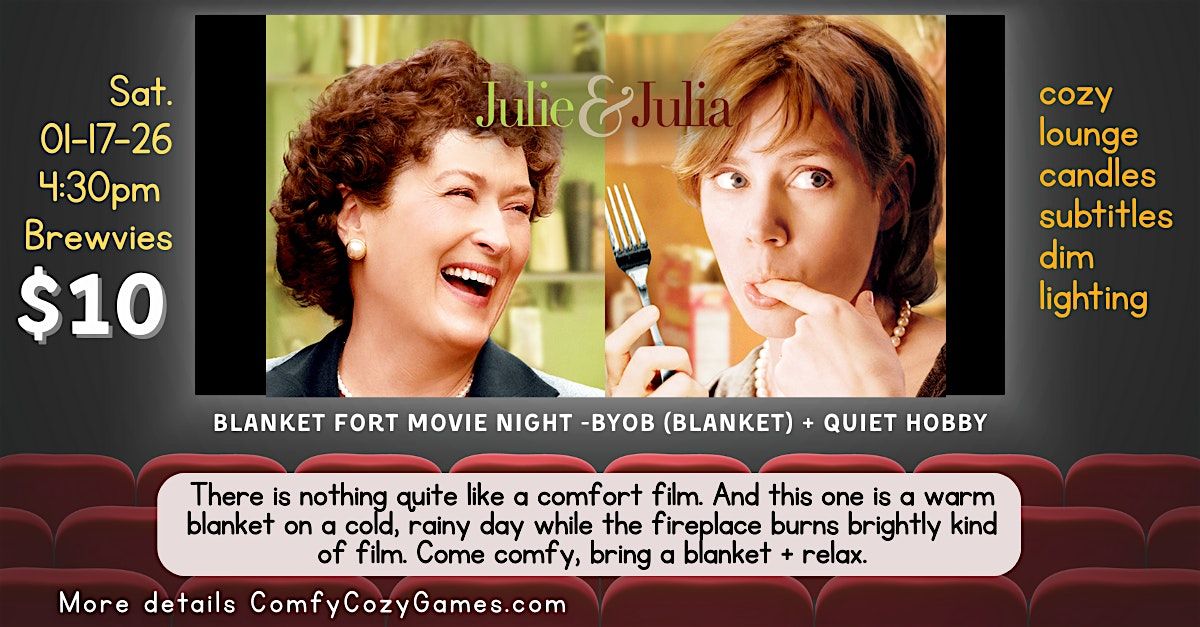 A cozy movie night designed for comfort, ease, & the "me time" you need. We’re transforming Brewvies into a cozy club house with candles, soft lighting, subtitles, and a comfort movie. This month is our themed blanket fort night. So BYOB (Blanket) + quiet hobby (crochet, cards, art, or anything you'd like)!