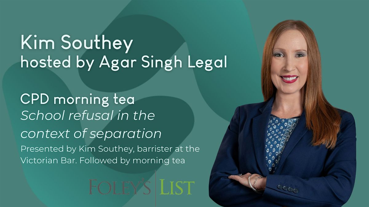 CPD morning tea: School refusal in the context of separation presented by Kim Southey and hosted by Agar Singh Legal