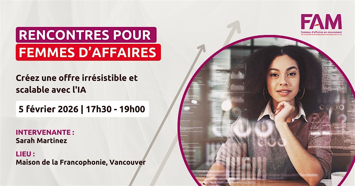 Le groupe Femmes d'Affaires en Mouvement (FAM), fondé par la SDECB en 2002, est une communauté dynamique qui s'adresse aux femmes entrepreneures francophones et bilingues de la Colombie-Britannique. Son objectif est d'accompagner les entrepreneures dans la réalisation de leurs ambitions et de les soutenir face aux défis courants tels que l'accès au financement, aux marchés, la discrimination, ou encore l'équilibre entre vie professionnelle et vie privée.