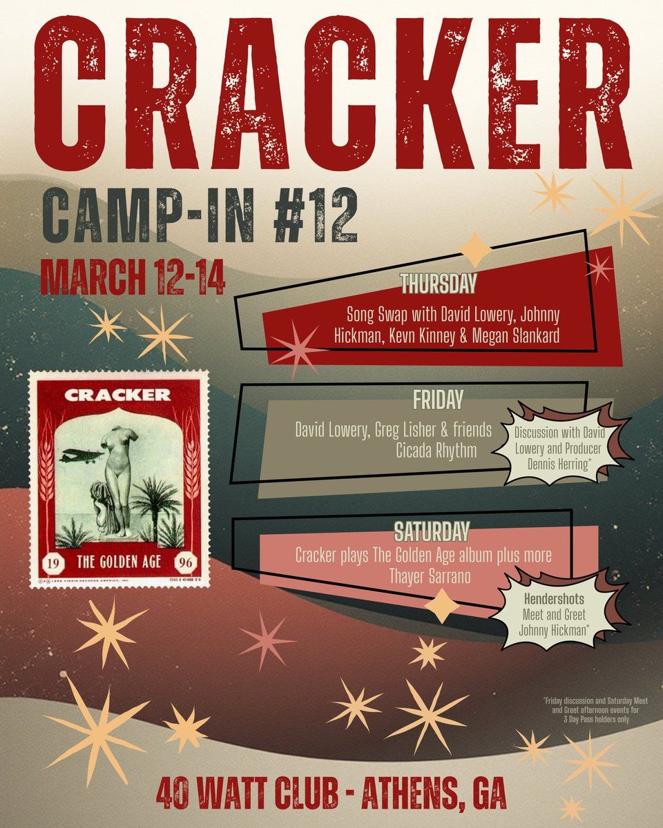 ✨ Experience the magic of Cracker Camp In: David Lowery Greg Lisher & Cicada Rhythm - Friday, where moments become memories that last a lifetime! 🏛️ The iconic 40 Watt Club in Athens, GA sets the perfect stage for an unforgettable celebration on March 12th, 2026 at 07:00 PM. 🌟 It's been a curated experience that brings together the best of entertainment and innovation, creating an atmosphere of wonder and excitement. From the moment you arrive, you'll be immersed in a world where the ordinary transforms into the extraordinary. 🎊 Book early to secure your place in what promises to be an event that will be talked about for years to come!http://maps.seatics.com/GeneralAdmissionEvent_2018-10-03_1713_SVGC_tn.gif
