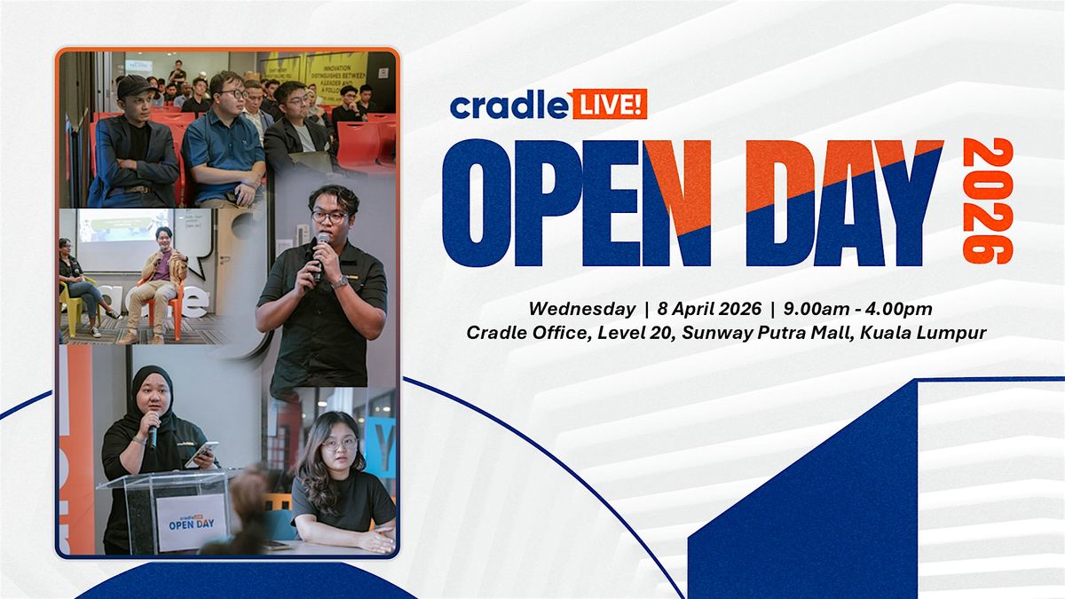 Join us for Cradle LIVE! Open Day April 2026, an immersive one-day session designed for aspiring founders, early-stage startups, and anyone interested in exploring Malaysia’s startup ecosystem.