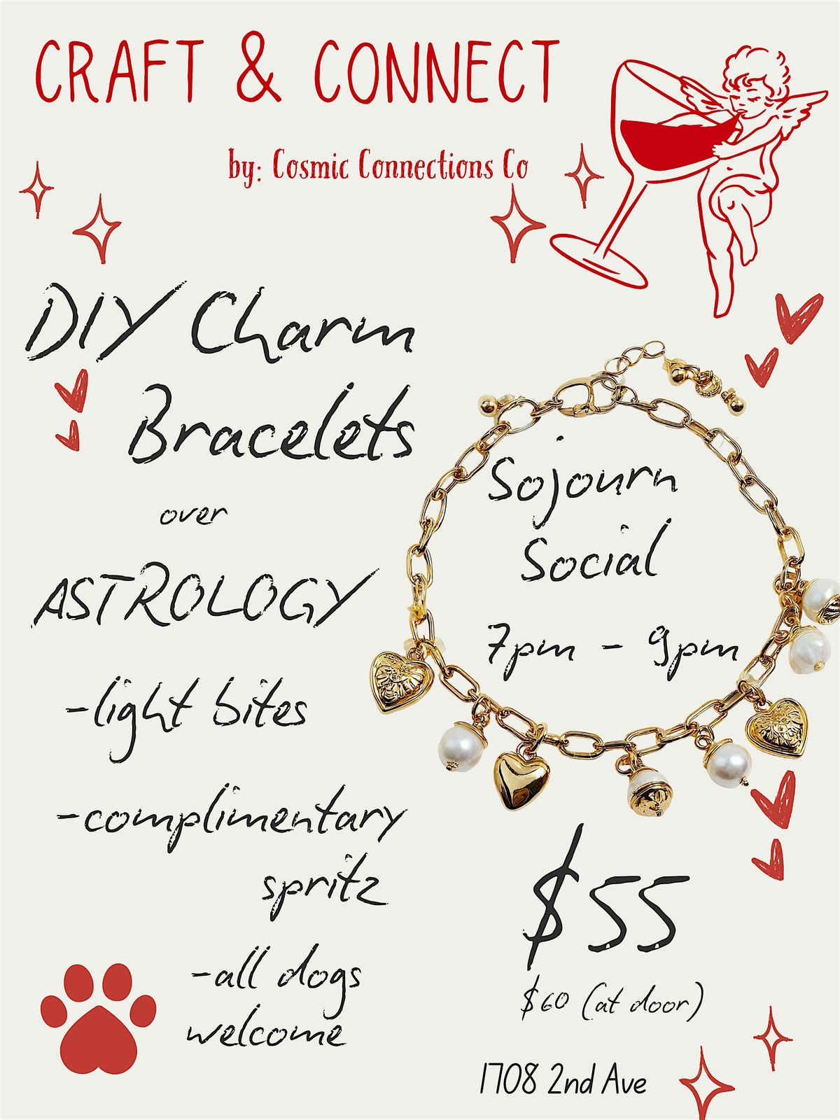 Design a charm bracelet or necklace while sipping spritz, enjoying bites, and getting mini astrology readings—limited to 20 guests.