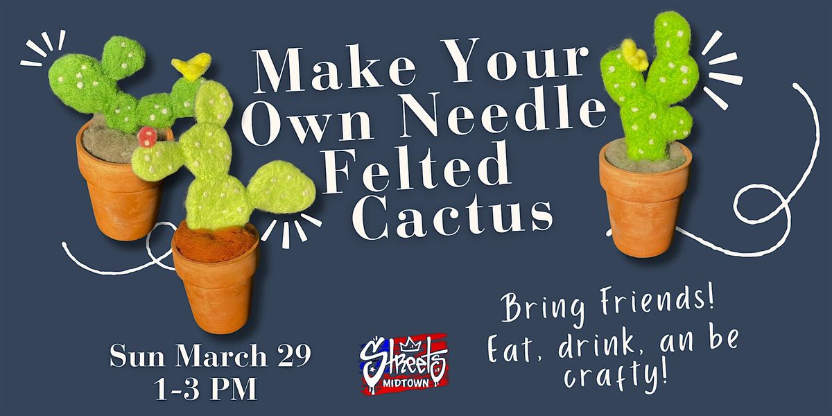 Welcome to Craft and Sip Needle Felted Cactuses! Join us at Streets Pub & Grub on March 29, 2026 at 1 PM (Pacific Time) for a fun afternoon of crafting and sipping. Let's get creative together and make some adorable needle felted cacti while enjoying delicious food and drinks. No experience necessary, just bring your enthusiasm! Don't miss out on this unique opportunity to unwind and get crafty. See you there!