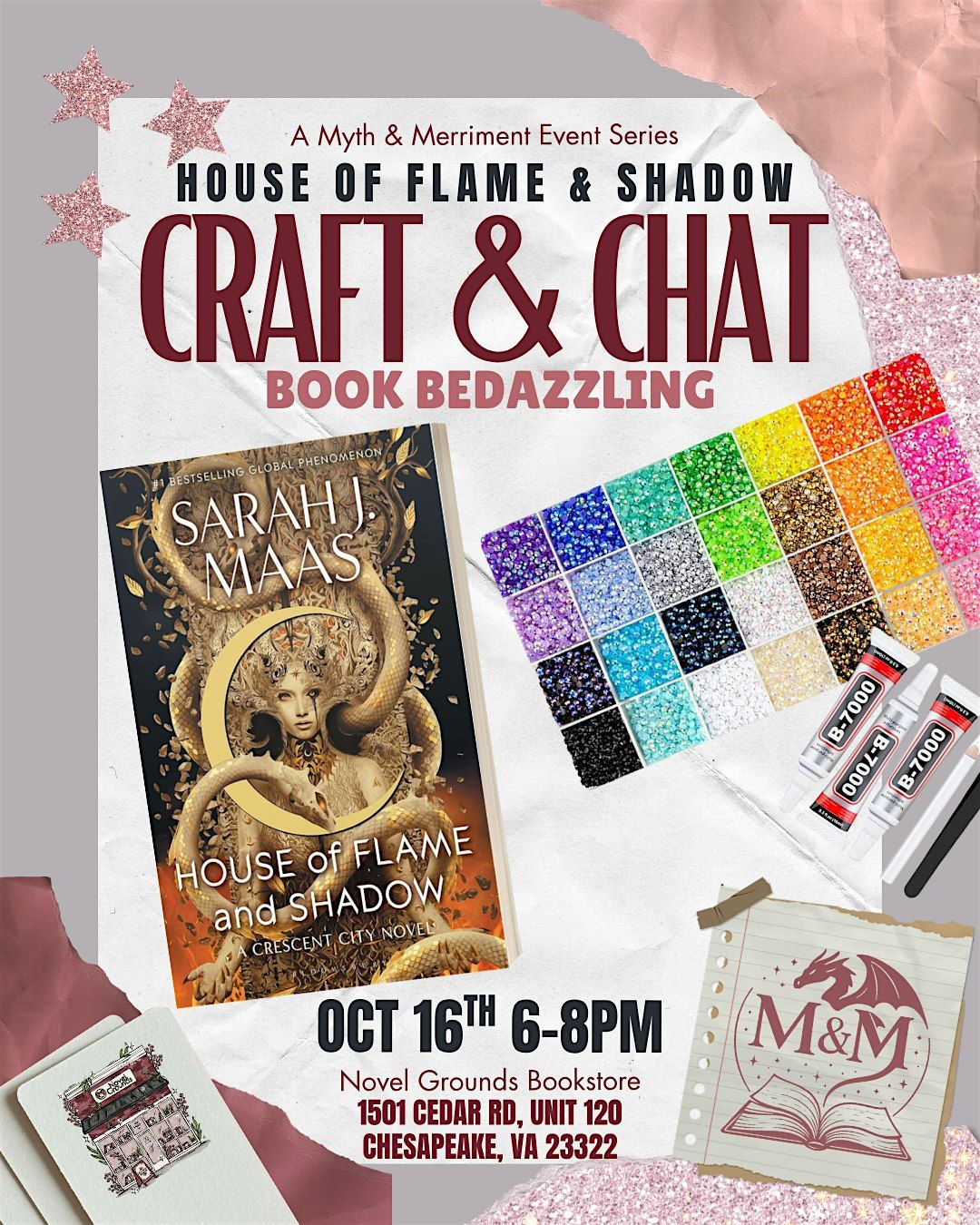 • Join us for one of our brand new event series, Craft and Chat! We will be doing a themed event with Myth and Merriment centered around the chosen book and talking ALL THE SPOILERS! So, come prepared book besties, it is time to DISH! All events will be $25.