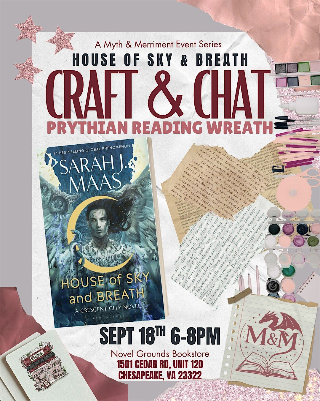• Join us for one of our brand new event series, Craft and Chat! We will be doing a themed event with Myth and Merriment centered around the chosen book and talking ALL THE SPOILERS! So, come prepared book besties, it is time to DISH! All events will be $25.