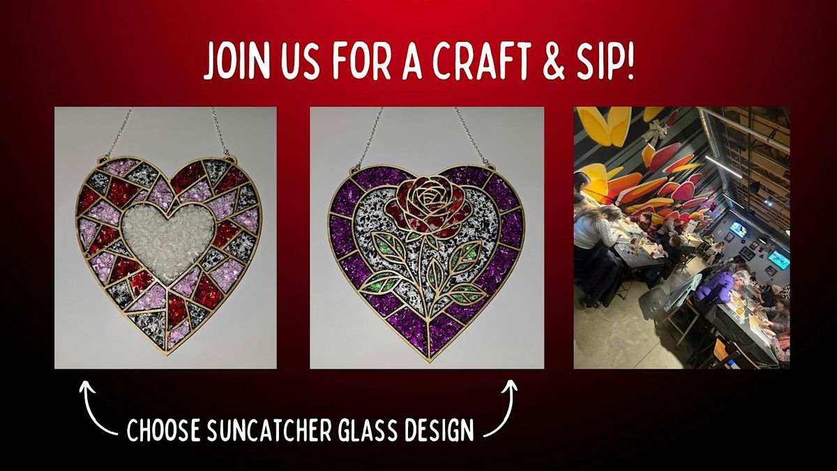 Craft & Sip Workshop - Heart (Geometric) or Heart (Rose) Crushed Stained Glass Suncatcher
