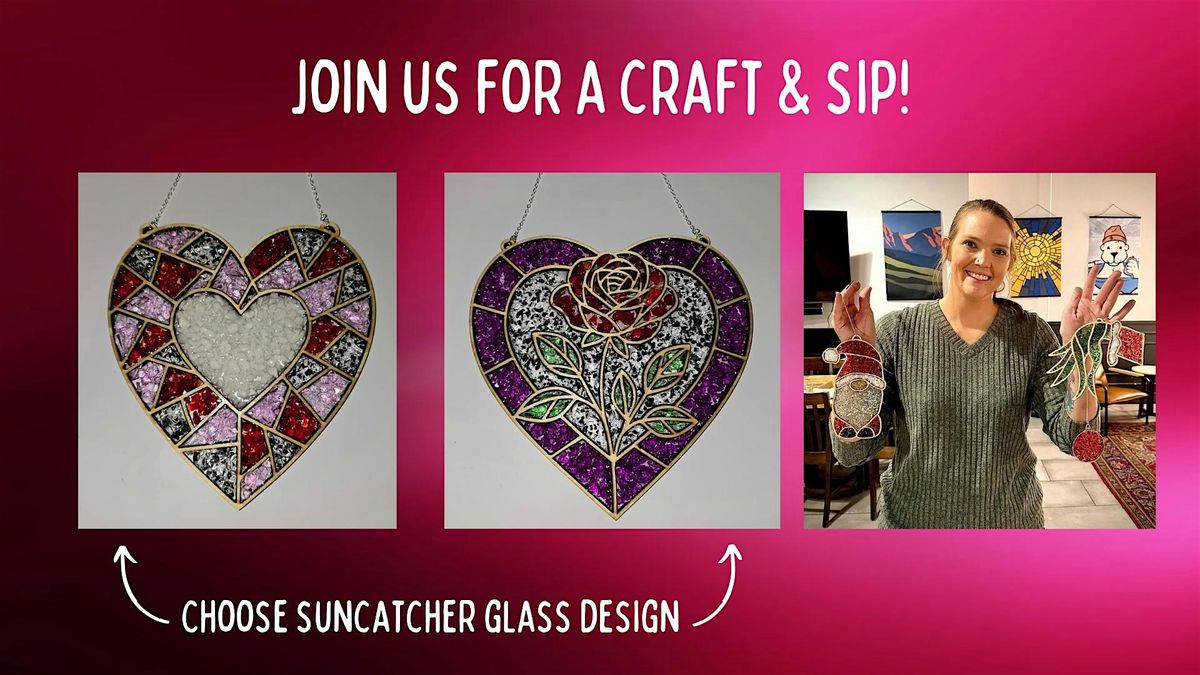 Craft & Sip Workshop - Heart (Geometric) or Heart (Rose) Crushed Stained Glass Suncatcher