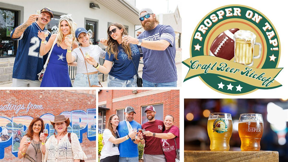 Join us on Saturday, October 10th, from 12 PMβ4 PM for Prosper on Tap: Craft Beer Kickoff! Enjoy a lively afternoon of craft beer, football vibes, and small-town charm. Sip your way through Downtown Prosper while soaking up all the pregame energy!