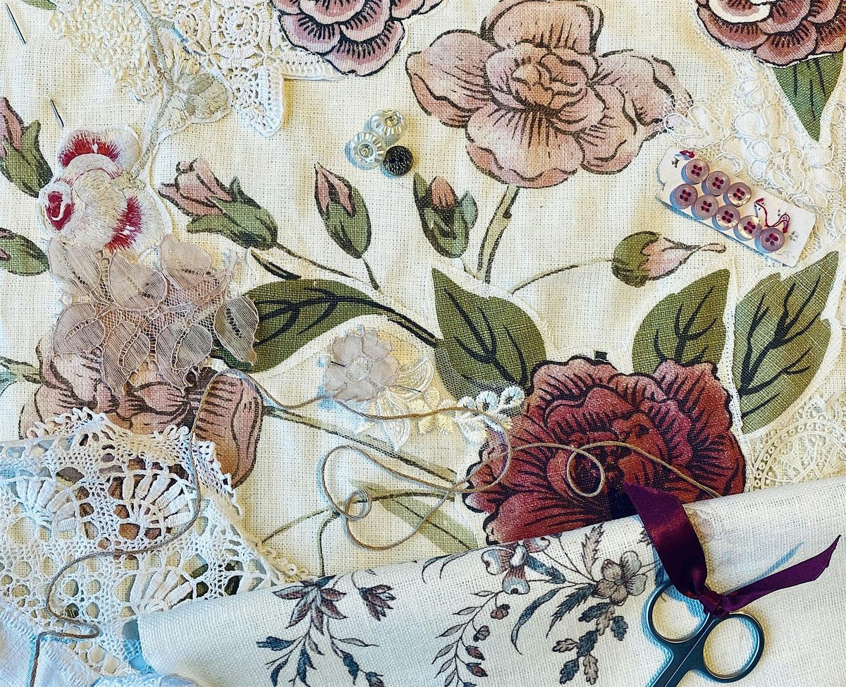 For our February class we will be taking inspiration from Lewis & Wood's beautiful Georgia design to make a rose and vintage lace sampler with decorative appliqué and embroidery. Suitable for all abilities, it's the perfect chance to learn the basics, try out new stitches or brush up on your techniques.