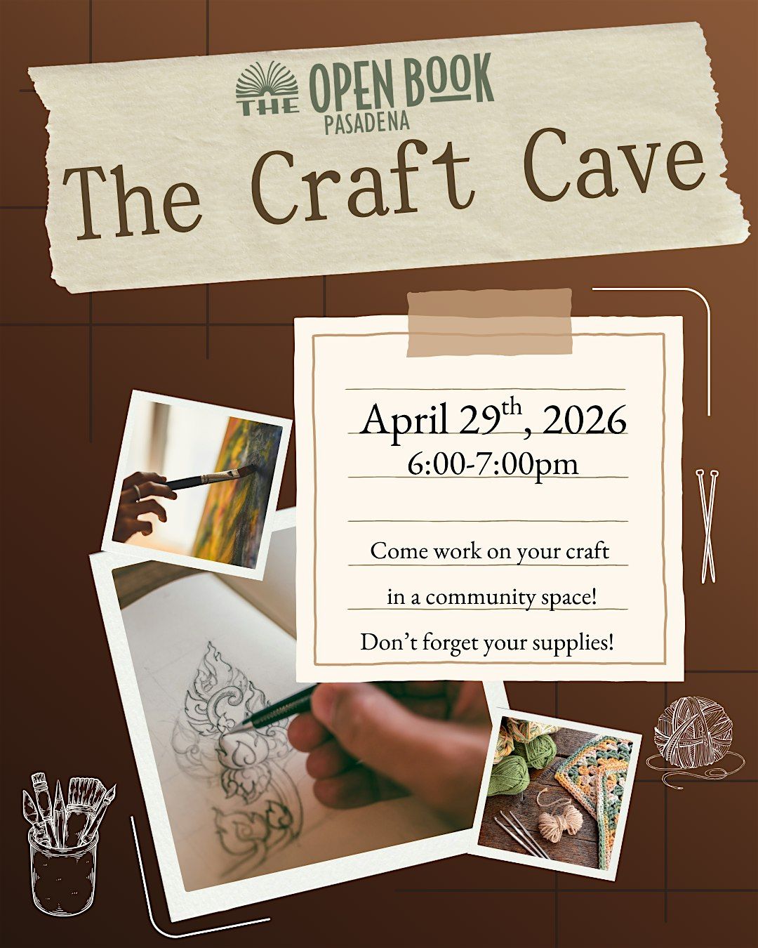 Work on your craft in a creative atmosphere! Please bring your own crafting supplies.About this Event