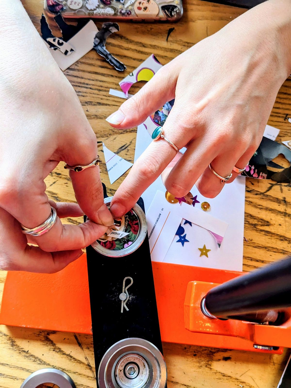 - Draw, collage and assemble your own button badges! We will have an array of magazines, patterned paper, books & general haberdashery to collage from. (Please feel free to bring collage material or photos to cut out from but these must be no thicker than printer paper in order to fit the badge maker machine).