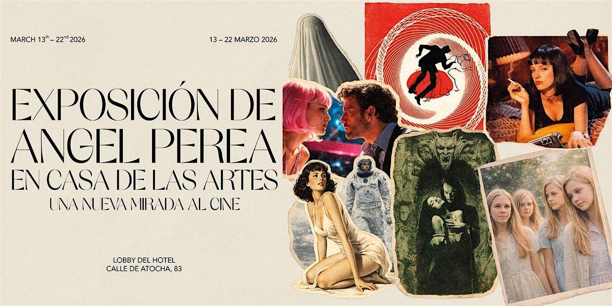 El collage, técnica protagonista en todas las piezas creadas por el artista Ángel Perea, funciona como metáfora del propio cine: fragmentos de imágenes, texturas y materiales que se superponen y se tensionan entre sí, del mismo modo en que una película se compone de planos, cortes y secuencias.