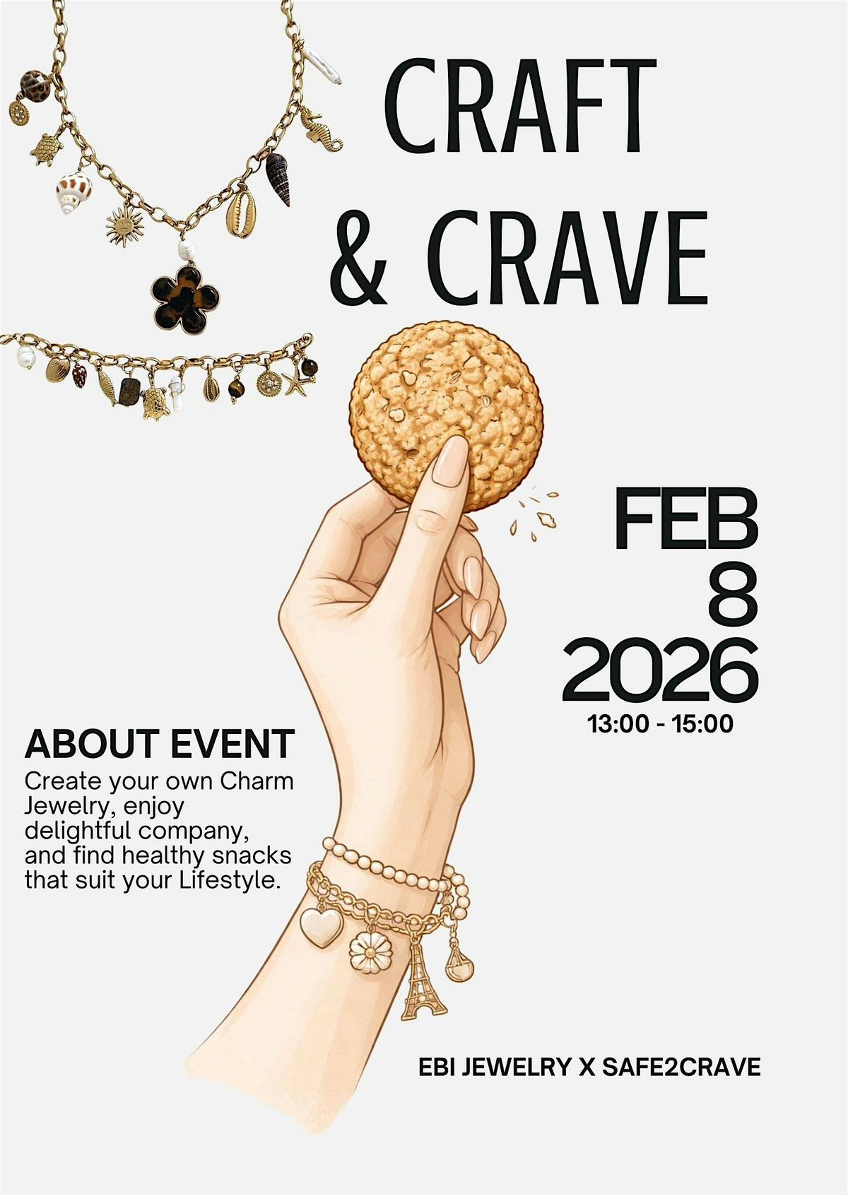 Get ready for a fun day where you'll dive into the world of handmade jewelry and satisfy your cravings with delicious treats. This in-person event is perfect for anyone who loves creating unique accessories and enjoying great food vibes. Bring your friends and let's make some sparkle together!