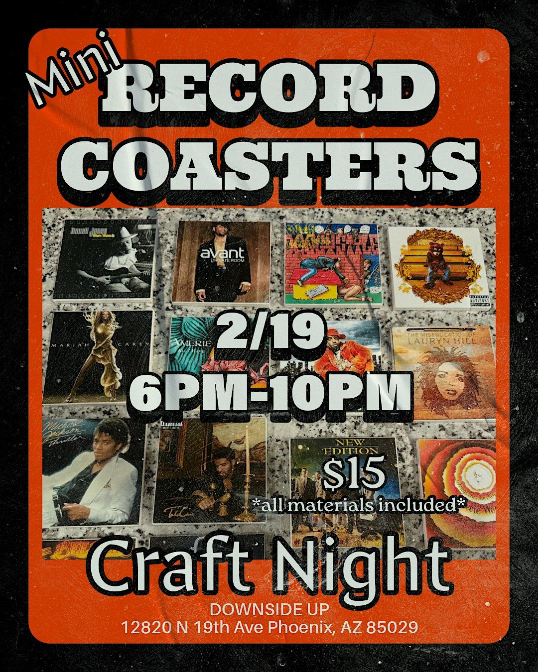 Get ready for a fun in-person craft night where we’ll be making mini record coasters! Perfect for music lovers and DIY fans alike, this hands-on event lets you create your own stylish coasters inspired by classic vinyl records. Bring your creativity and enjoy a chill evening of crafting, laughs, and good vibes. No experience needed—just come ready to have a blast!