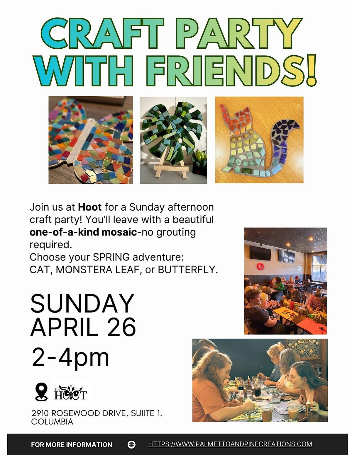 You’ll design your own beautiful mosaic piece using simple techniques—no grout required. With easy-to-use materials and step-by-step guidance, you can focus on having fun, getting creative, and making something you’re proud to take home. Perfect for an easygoing afternoon of creativity, connection, and fun!