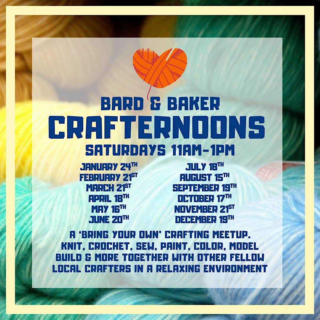 Join us at Bard & Baker for our monthly Crafternoons Crafting Meetup in The Cottage 11am-1pm on select Saturdays!