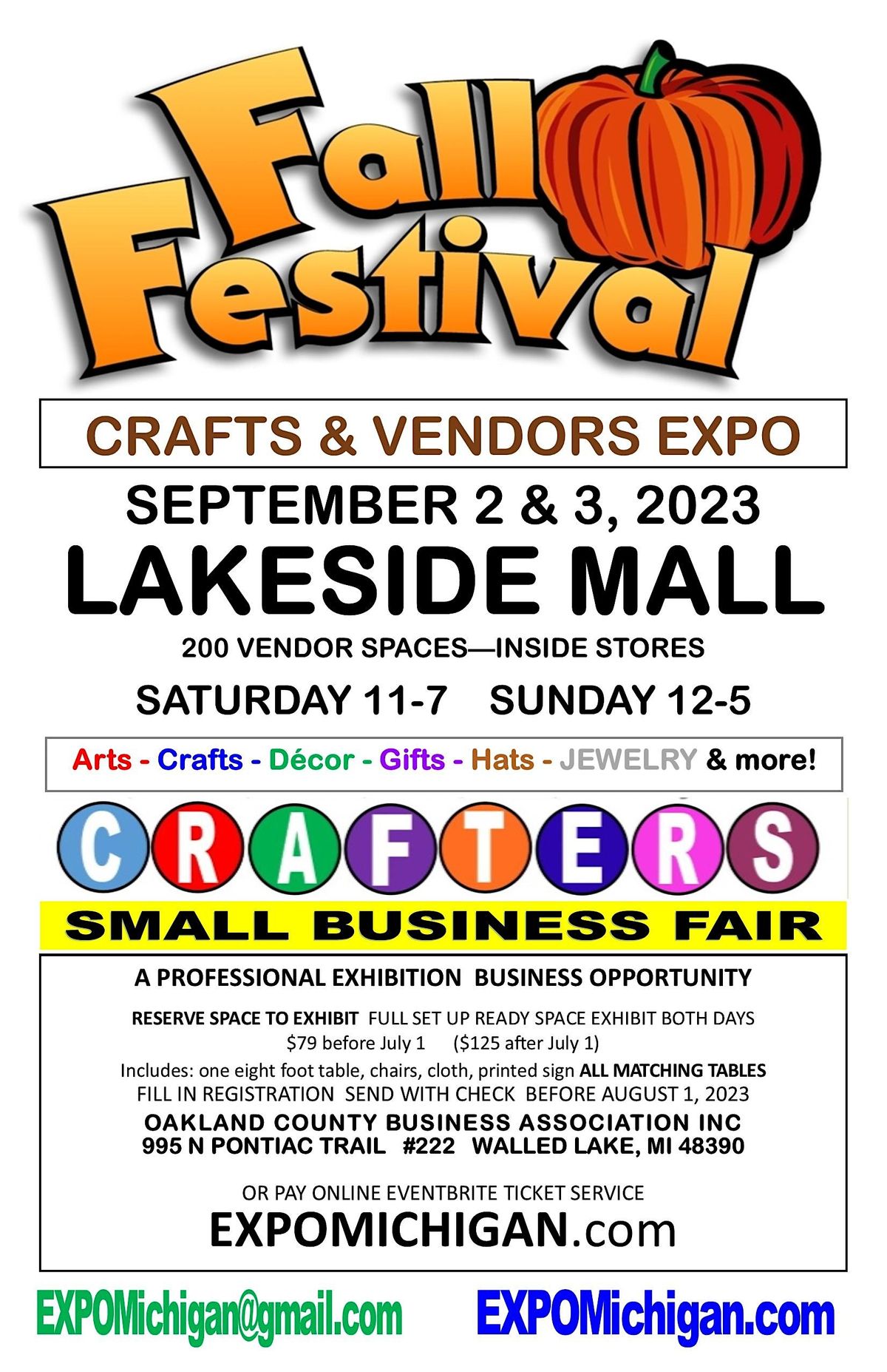 Hello, here is all information for FALL FESTIVAL and HOLIDAY MARKETPLACE events at Lakeside Mall in Sterling Heights, Michigan 48313.