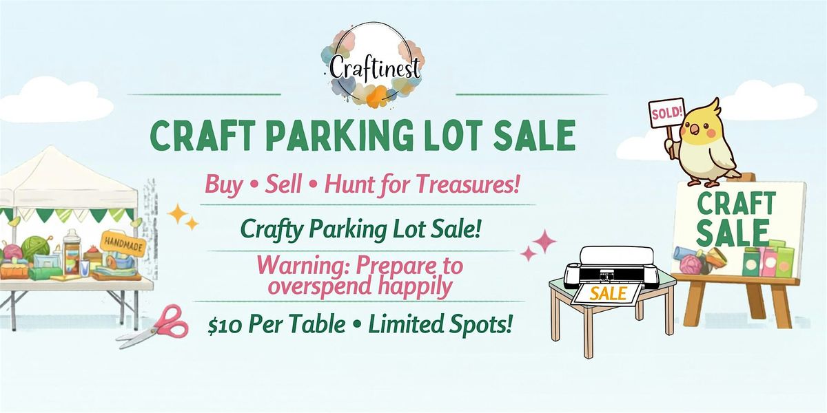 - A parking lot packed with crafty treasures, destash goodies, and handmade creations