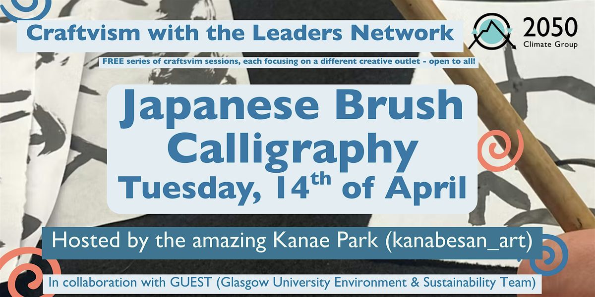 Join the 2050 Climate Group Leaders Network for this free interactive introduction to the art of Japanese Brush Calligraphy as part of a Craftvism series in Glasgow.