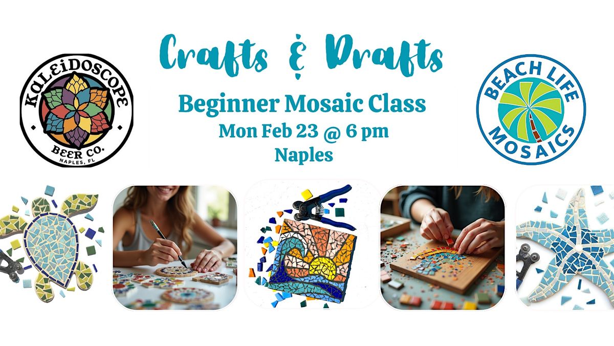 Beginner mosaic class in Naples! Prices from $40 - $80 and includes a FREE DRINK. Projects are great for ages 8+. All materials are included. Your project will come with the following: