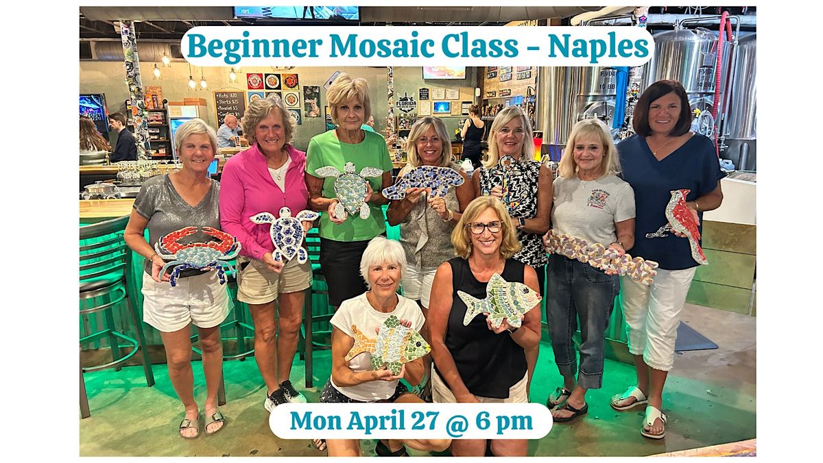 Beginner mosaic class in Naples! Prices from $40 - $80 and includes a FREE DRINK. Projects are great for ages 8+. All materials are included. Your project will come with the following: