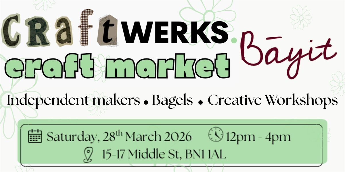 We are trying something new here at WERKS. As a way to open our space to the wider brighton creative community, we are hosting our first WERKS Craft Market in our Middle Street location. Expect a vibrant mix of independent makers, curated and practical workshops, plus a very special pop-up from Open Markets best kept secret, the much-loved Bayit Bagels.