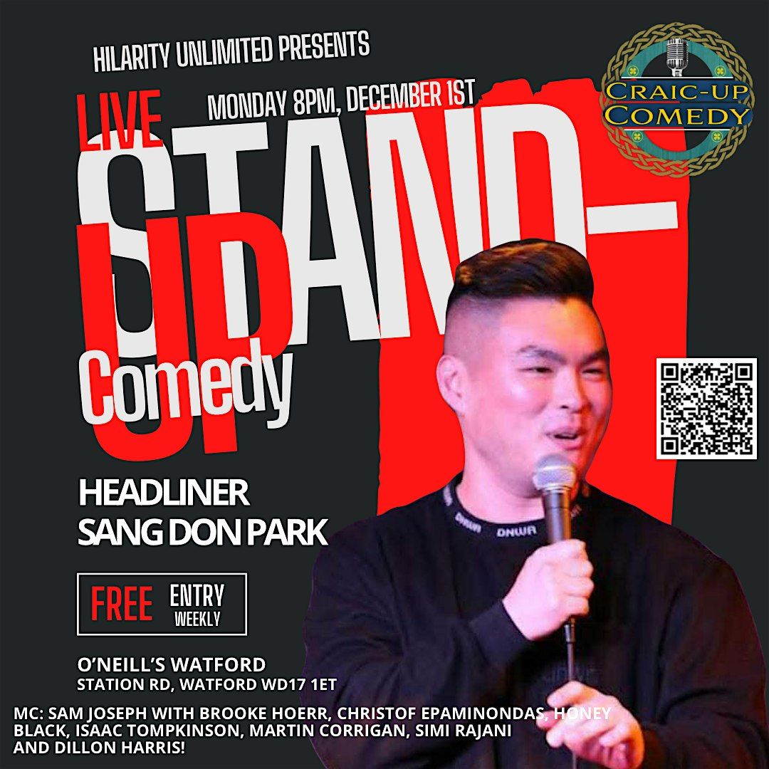 You kept asking for more, we just went ahead and listened. It’s Craic-Up Comedy this coming Monday at O’Neill’s Watford with the hilarious Sang Don Park headlining.