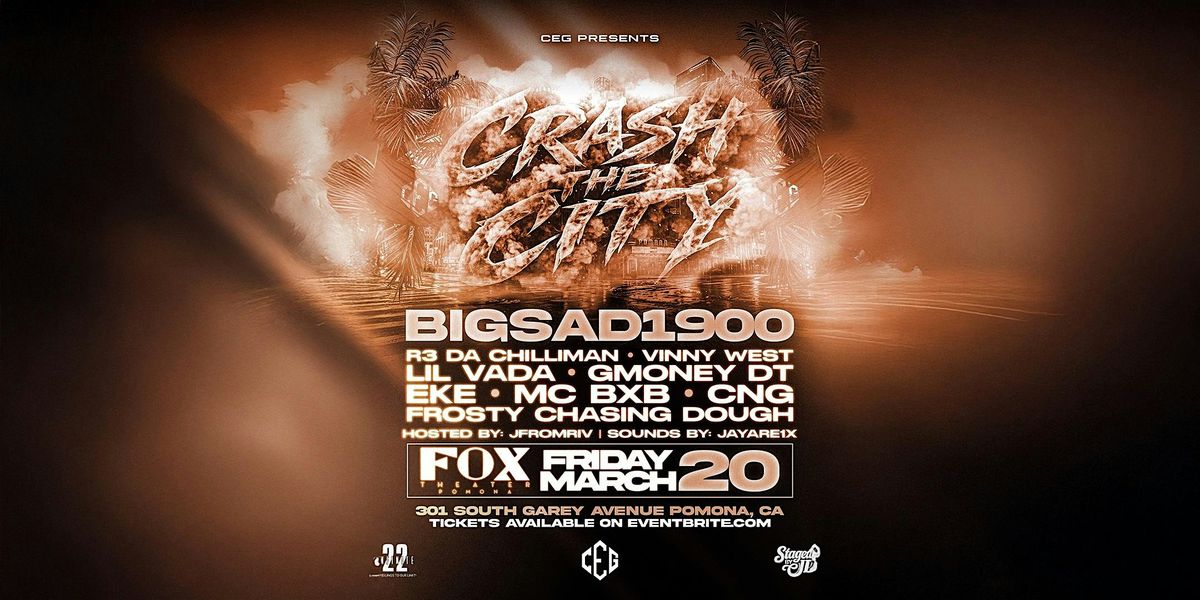 Crash The City is headed to the Fox Theater, March 20th! Come see Los Angeles biggest rappers perform on the same stage, for one night only!