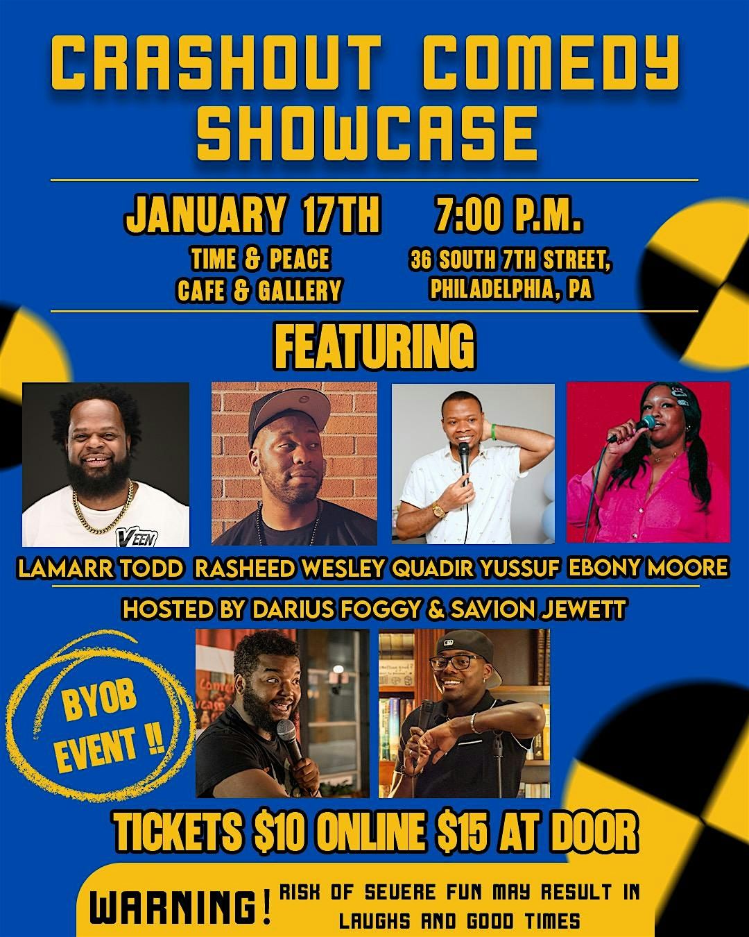Come join us for a night of laughter at Crash Out Comedy Showcase!!!Location: Time & Peace Cafe and GalleryDoors open at 6:30pm