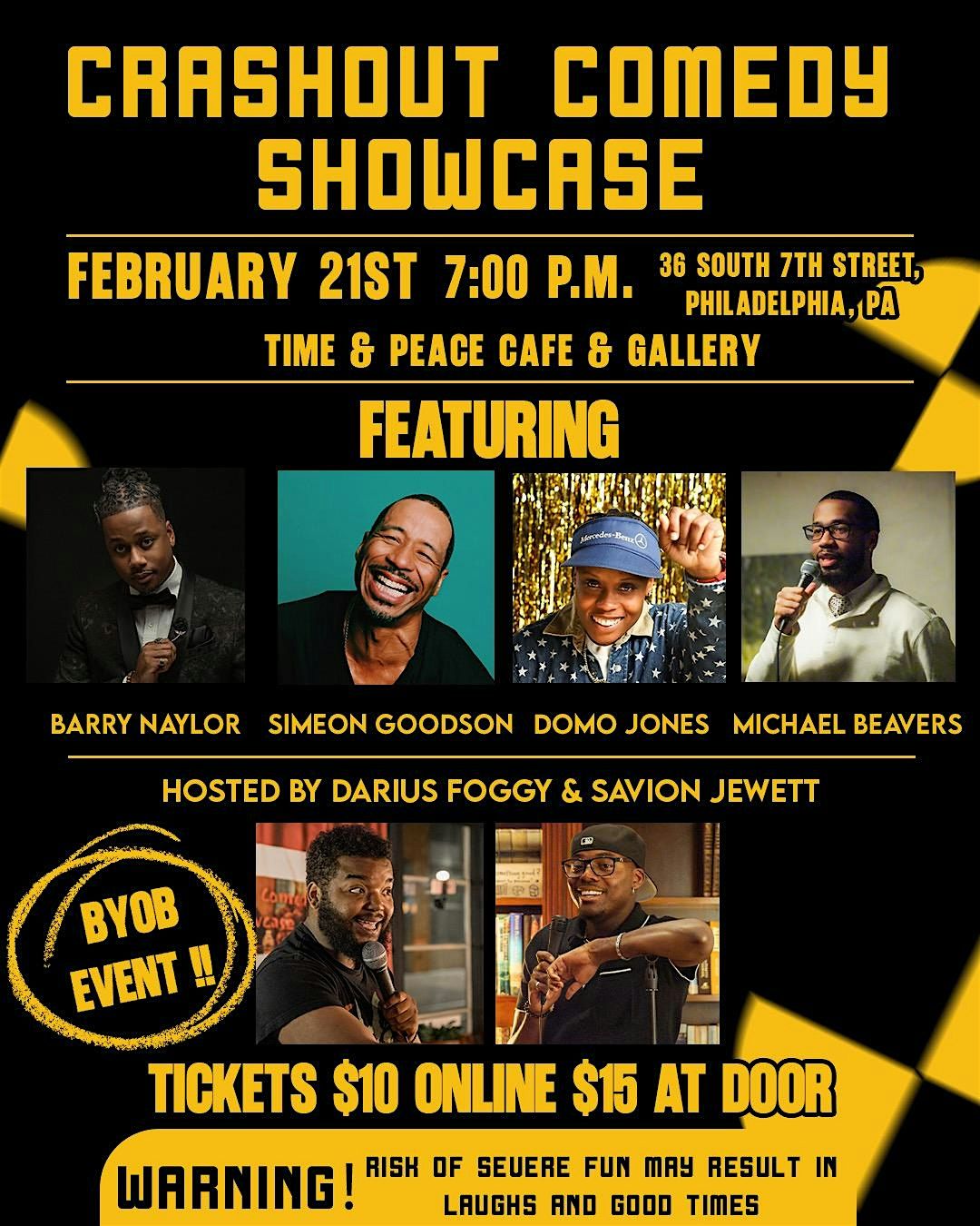 Come join us for a night of laughter at Crash Out Comedy Showcase!!!Location: Time & Peace Cafe and GalleryDoors open at 6:30pm