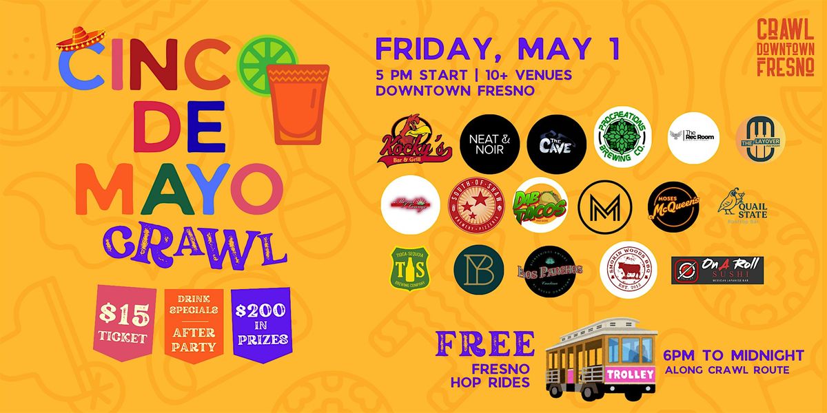 Thanks to Fresno HOP, the Trolley will be following the map of the crawl until midnight. This is totally free to ride all night long! Stops all along the map will let you get around to where you want to go! The route will begin at South of Shaw. Posted maps and the ride schedule will be available along the route.