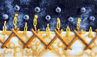This will explore the potential of combining a range of basic stitches to create pattern. After the first couple of examples suggested by the tutor, students will create their own pairings of stitches and work them on a sampler in a variety of colours and thread types. New stitches will be introduced throughout the course. This explores combining different stitches in a range of ways for decorative lines. These patterns are great for crazy patchwork, embellishing clothing, creating borders or in mixed media art.