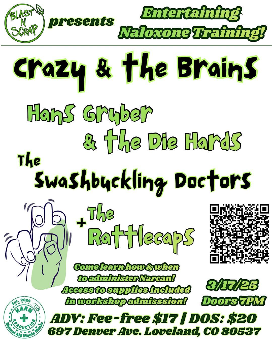 Crazy & the Brains | Hans Gruber & the Die Hards tour! Paired w/ Swashbuckling Doctors & The Rattlecaps alongside a harm reduction workshopAbout this Event
