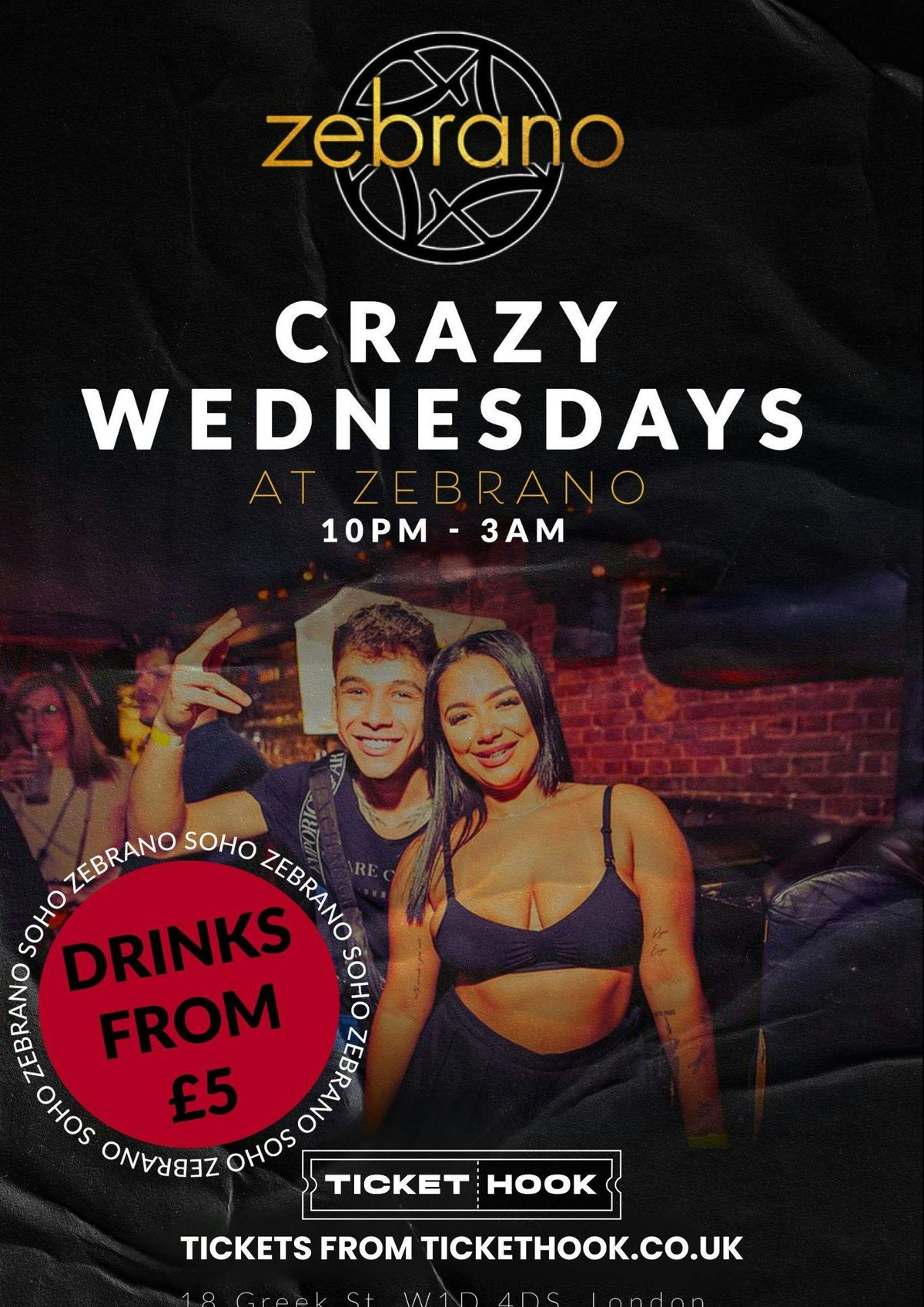 When the lights go down, the party starts.Zebrano After Dark is your Wednesday night escape, with deep cuts, dance floor energy, and some of Soho’s best cocktails. From post-work drinks to 3AM moves – this is where Wednesday turns electric.Drinks from £5 all night long with the Zebrano App?? Address: 18 Greek Street, Soho, London W1D 4DS? Nearest Tube: Tottenham Court Road? Entry: Please note, entry is at the discretion of the venue. No single entry.? Physical ID Required: Photos or scans not accepted – bring valid physical ID.? Ticket Name: Must match your ID for smooth entry.