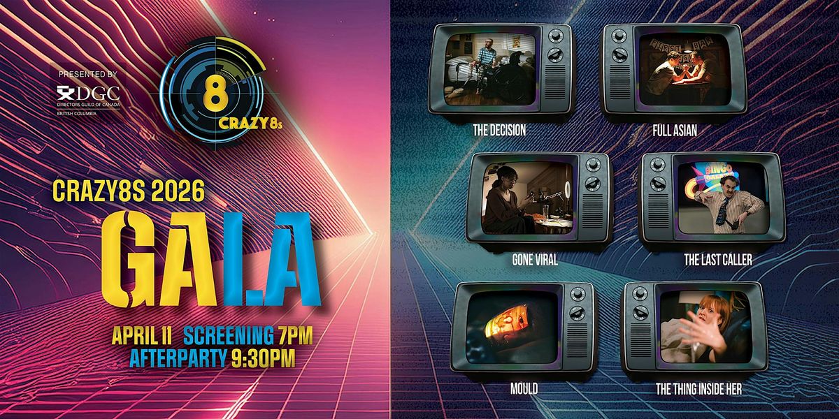 Crazy8s Film Society proudly presents a celebration of 6 new short films with the theme "Into the Unknown"—made by 6 inspiring filmmaking teams in just 8 crazy days—at the annual Crazy8s 2026 Gala Screening at The Centre in Vancouver. This is Crazy8s’ 27th year since the very first screening in 1999.