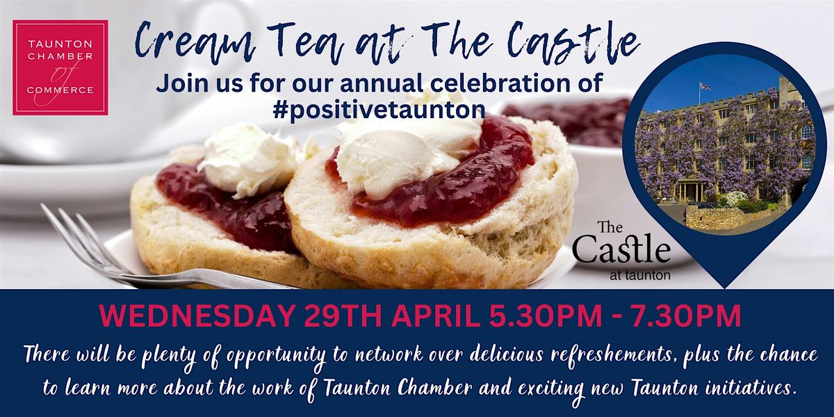 Join us at the Castle Hotel where there will be plenty of opportunity to network over delicious refreshments, plus the chance to learn more about the work of Taunton Chamber over the last year and what we have planned for future initiatives.