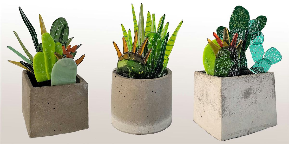 In this class I will teach you how to cut glass to create your cactus ready to fire in the kiln. Once you have your shapes we will then decorate the pieces to bring the cactus to life. We will also make a plant pot ready to display you newly made succulents once they are fired. There will be time to design your own cactus plants, or you can use my templates that will be available to chose from. We will be making your pots from concrete, in keeping with the latest trend for cactus and fun to make!
