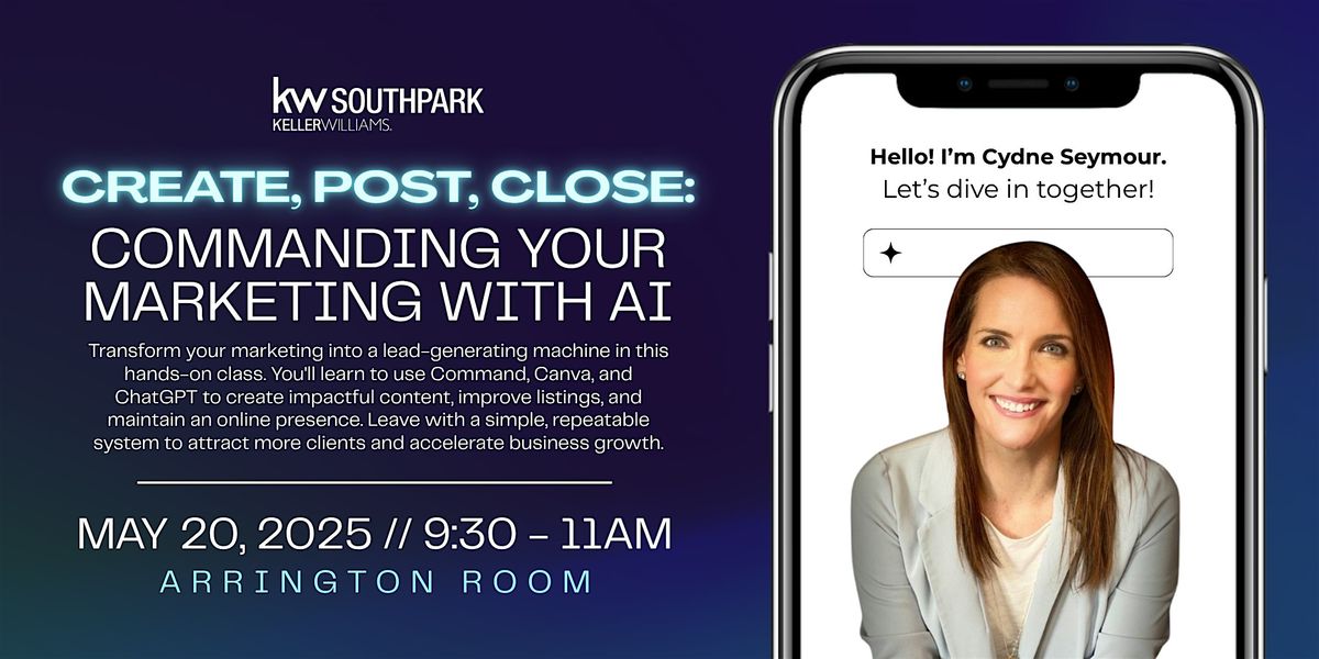 Turn your marketing into a lead-generating machine. In this hands-on class, you’ll learn how to use Command, Canva, and ChatGPT to quickly create high-impact content, write better listings, and show up consistently online. Walk away with a simple, repeatable system to attract more clients and grow your business—faster.