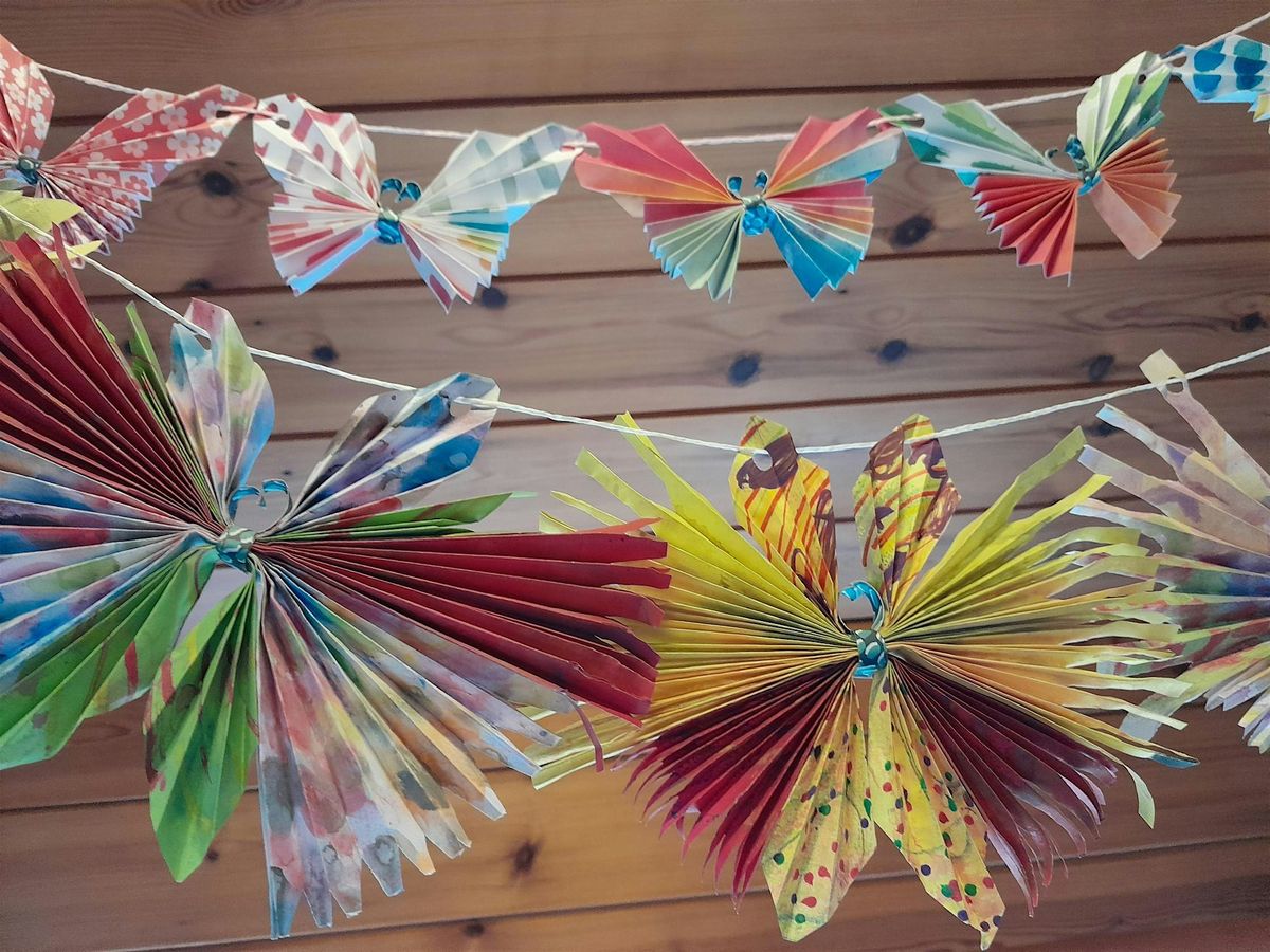 This is a super fun and friendly children's art workshop, exploring a range of media and using simple folding techiniques to create beautiful butterfly bunting! Learn how to create some different effects using wax, paint, ink and coloured pens. Play around with colour and scale and learn how to tailor your designs to your desired outcome. The session offers lots choice and freedom to get bold and confident with your creativity! Suitable for 8 to 11yrs.