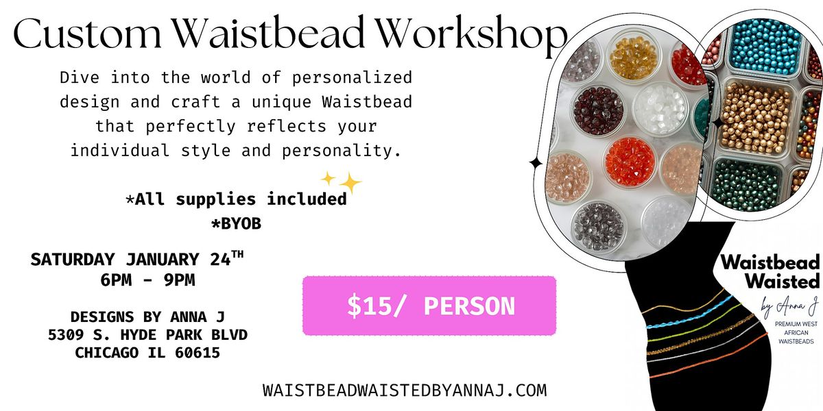 Join us for an unforgettable evening of creativity and self-love as you learn the art of crafting your own custom Waistbeads! In this hands-on workshop, Anna J, renowned for her exquisite West African-style Waistbeads, will guide you through the process of creating your own unique piece.