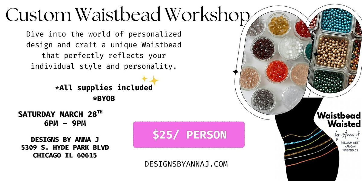 Join us for an unforgettable evening of creativity and self-love as you learn the art of crafting your own custom Waistbeads! In this hands-on workshop, Anna J, renowned for her exquisite West African-style Waistbeads, will guide you through the process of creating your own unique piece.
