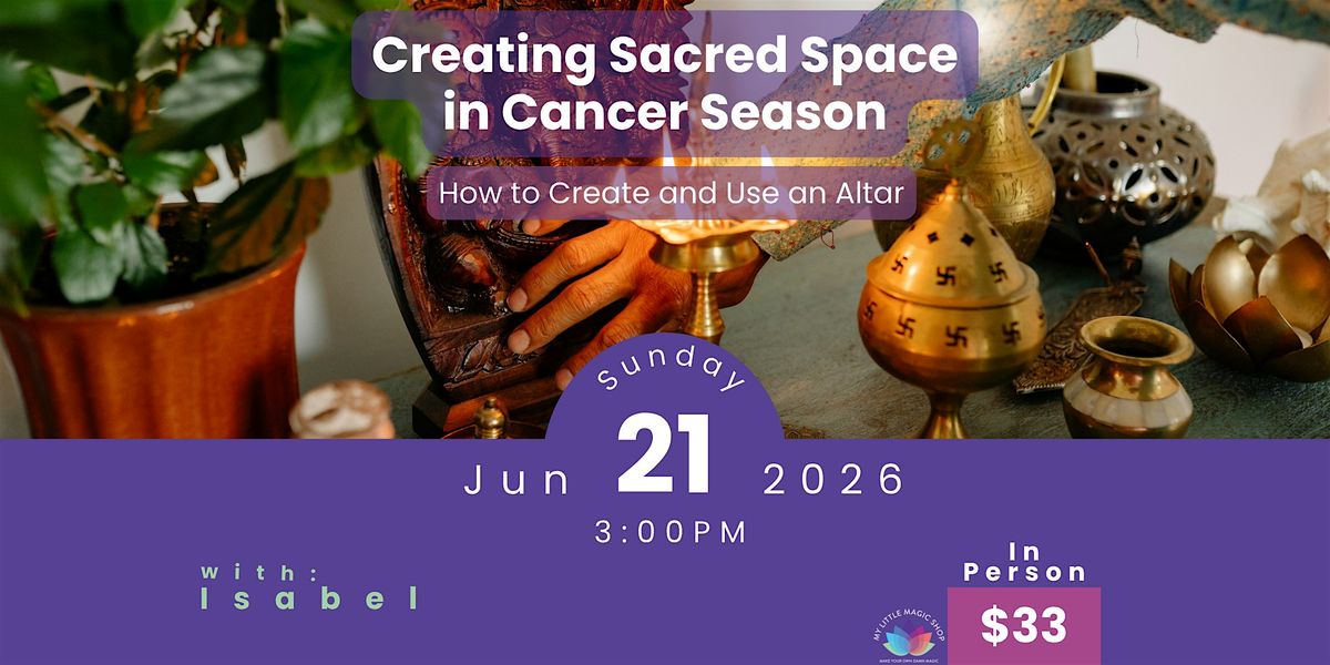 Creating Sacred Space in Cancer Season is a soothing, heart-centered workshop that explores the magic of carving out intentional space in your home and within yourself. Cancer season invites comfort, emotional safety, and inner connection, while the Summer Solstice brings expansion, illumination, and renewed energy. Together, these energies create a beautiful moment to learn how to build and tend your own sacred space.
