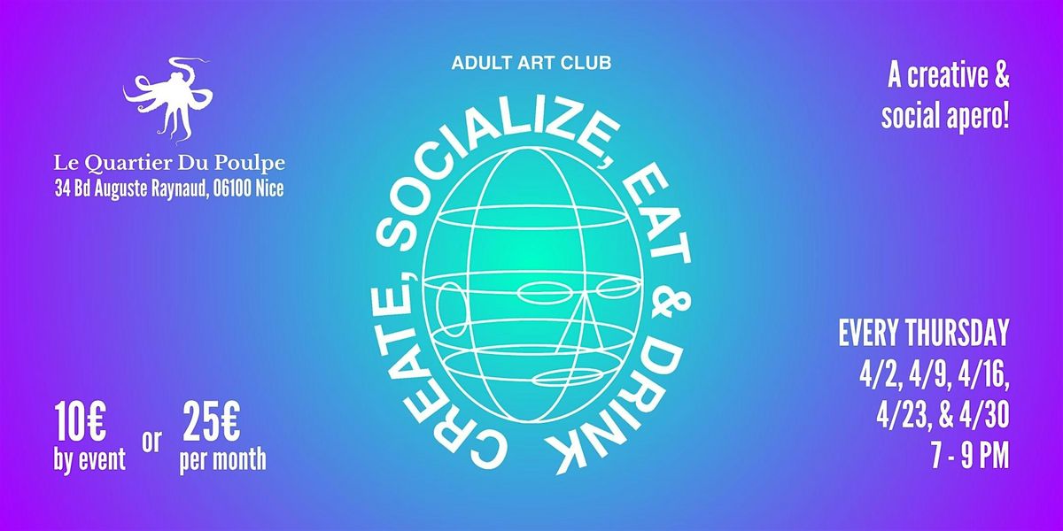 Envie de vous détendre, de faire de nouvelles rencontres et de soutenir les artistes et commerces locaux ? Bienvenue au Club d'art pour adultes, qui se tient dans le cadre unique et créatif du Quartier du Poulpe !