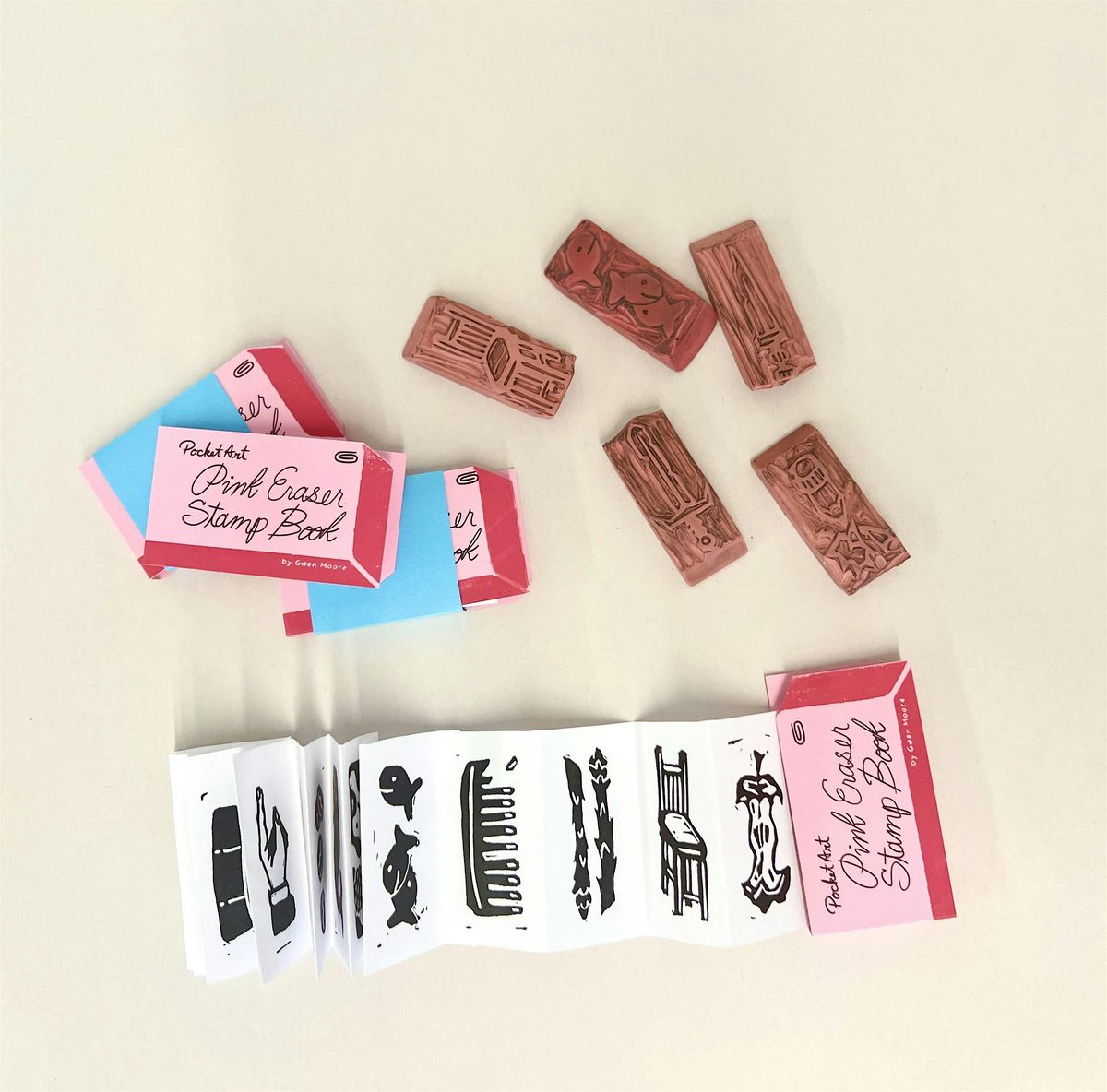 In this beginner friendly printmaking class led by local artist Gwen Moore, participants will work with materials that can be found at the Dollar Store or lying around the house. Learn two different printmaking methods: foam carving and pink eraser carving. Gwen will guide participants through the process of designing an image, carving it into each material, and printing the final images onto paper. Everyone will leave with duplicates of their prints and their own custom stamps at the end of the day. No experience necessary.