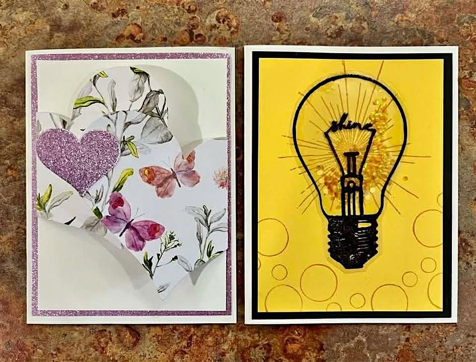 Come and learn how to make the two above cards in the class. A special one with a HEARTS gatefold and the second one to celebrate Thomas Edison's birthday. It will be electrifying! Wink wink!