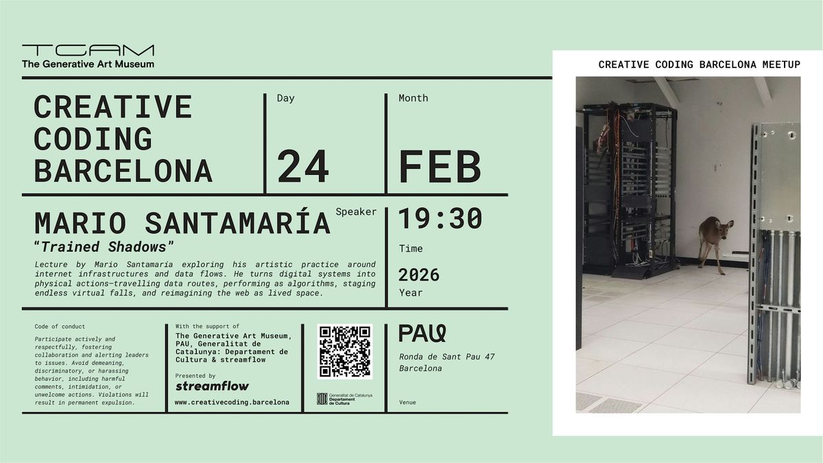 Creative Coding Barcelona is a community that explores the creative possibilities of programming. Its mission is to share knowledge and inspiration about computational art while encouraging multidisciplinary collaboration.