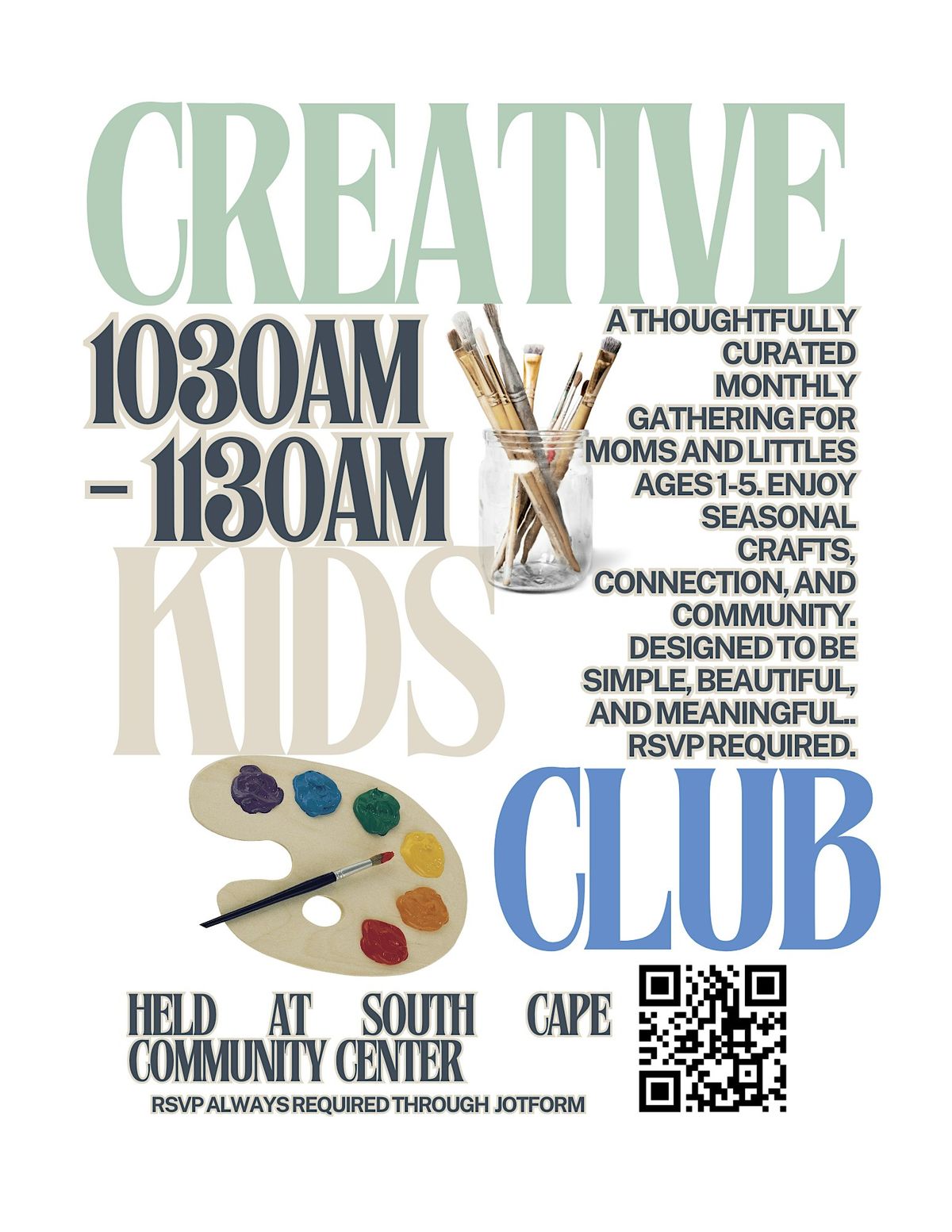 A THOUGHTFULLY CURATED BIWEEKLY GATHERING FOR MOMS AND LITTLES AGES 1-4. ENJOY PROCESS ART, CRAFTS, CONNECTION, AND COMMUNITY.About this Event