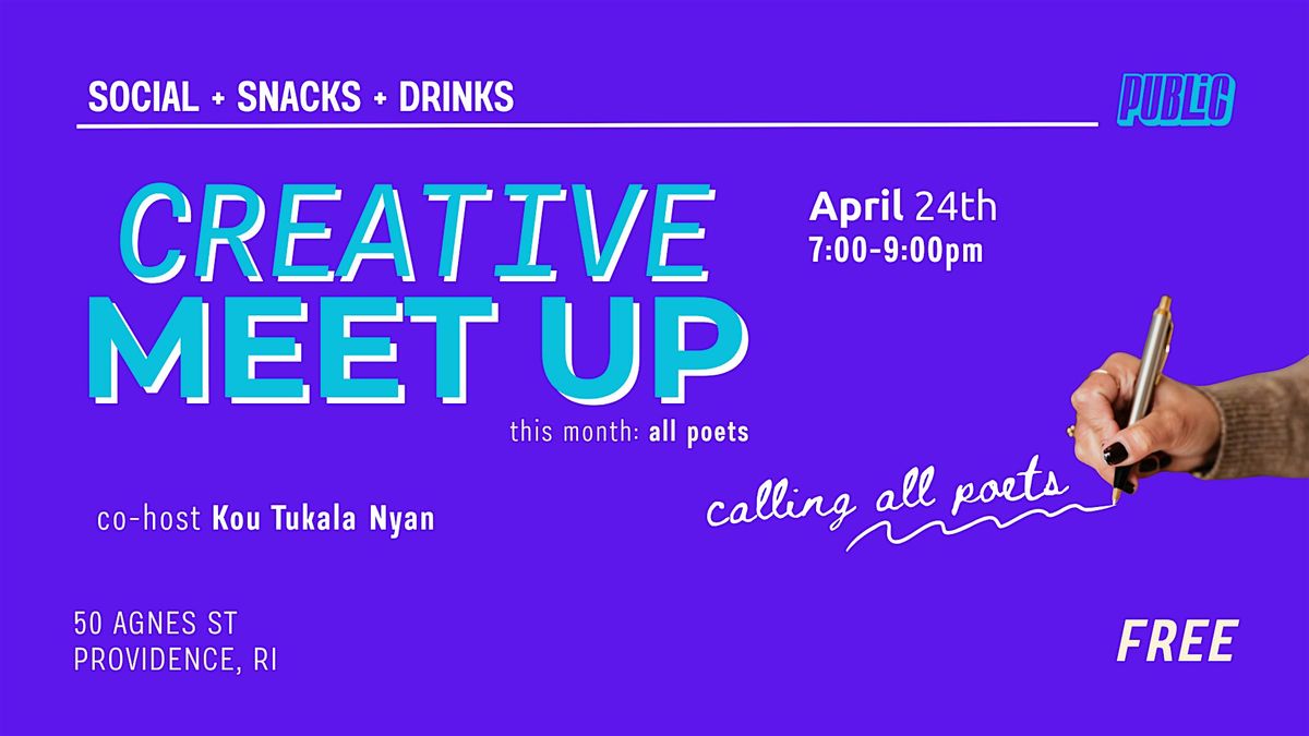 Each month, we invite a special group of creatives to meet up. This month, we’re inviting all poets to meet up!