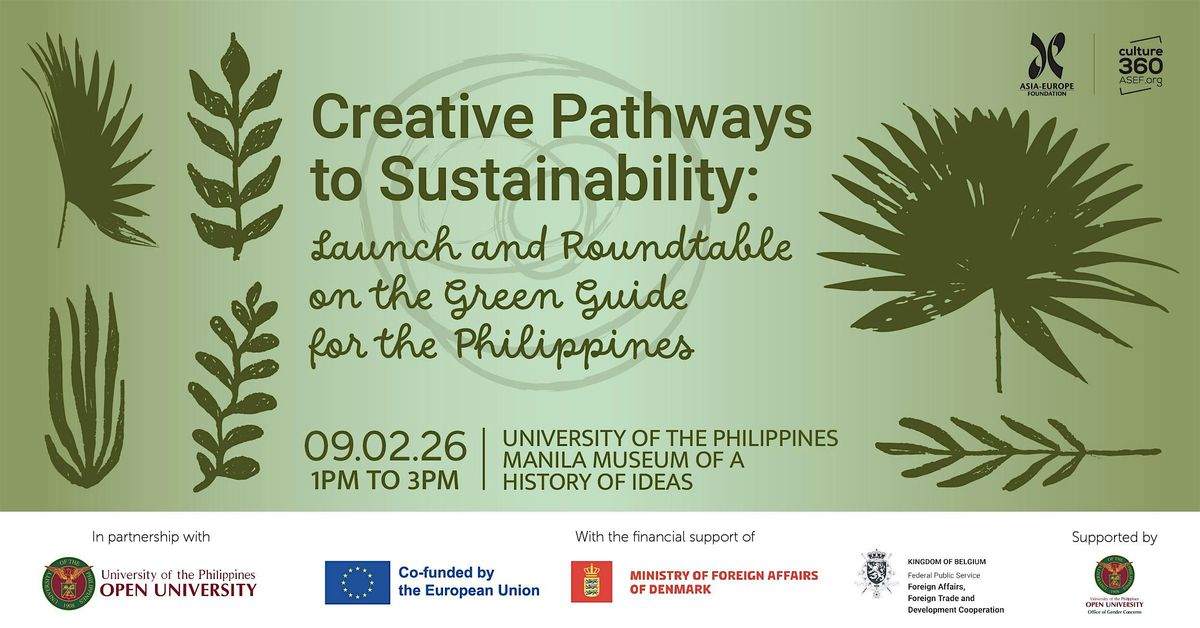 The Asia-Europe Foundation (ASEF) through its arts and culture portal, culture360.ASEF.org, in partnership with the University of the Philippines Open University (UPOU), invites you to Creative Pathways to Sustainability: Launch and Roundtable on the Green Guide for the Philippines.