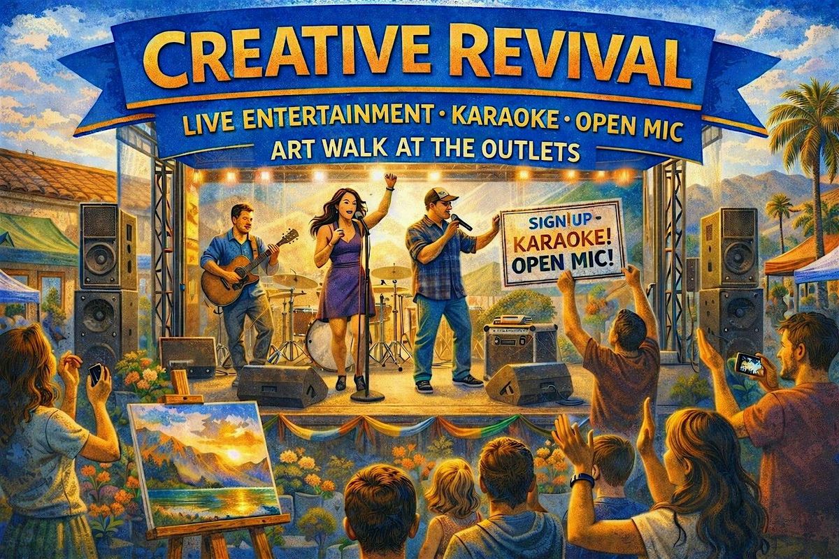 Monthly Art Walk at the Lake Elsinore Outlets! Live music, open mic, local artists selling and creating, free kids art activities, a mural scavenger hunt,a rummage sale, and photo opps.
